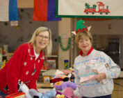 Sr. Ann and the 8th-grade class from St. Raymond’s School helped set up and categorize the toys for the toy distribution. Students from St. Charles school also came to decorate the hall.